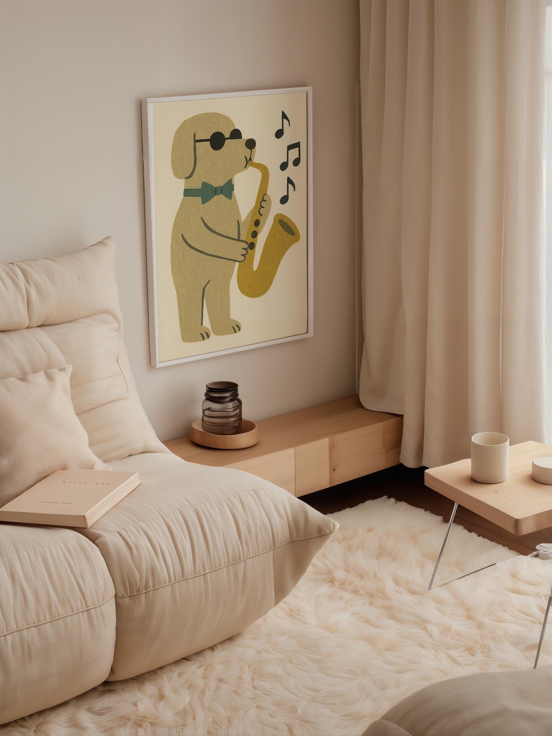 Bring rhythm and fun to your walls with this Saxophone Dog Rolled Poster, a cool and humorous art print that combines music and personality in one playful design. Featuring a stylish dog playing the saxophone, this artwork adds a lively, jazzy vibe to any space — perfect for kids’ rooms, nurseries, playrooms, or even music studios. Printed on high-quality, fade-resistant paper, this unframed poster makes a unique decor piece for dog lovers, musicians, or anyone who enjoys a bit of creative flair.
