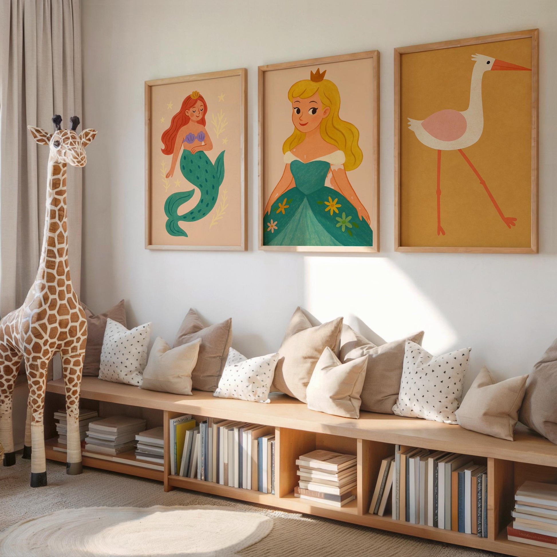 Bring fairytale charm to your little one’s space with this Blonde Princess Art Print. Featuring a beautifully illustrated princess with whimsical details and soft colors, this artwork adds magic and warmth to any nursery, bedroom, or playroom. Its gentle, storybook-inspired design makes it perfect for creating a dreamy and imaginative atmosphere. Printed on high-quality paper and delivered unframed, it’s easy to pair with any decor style.