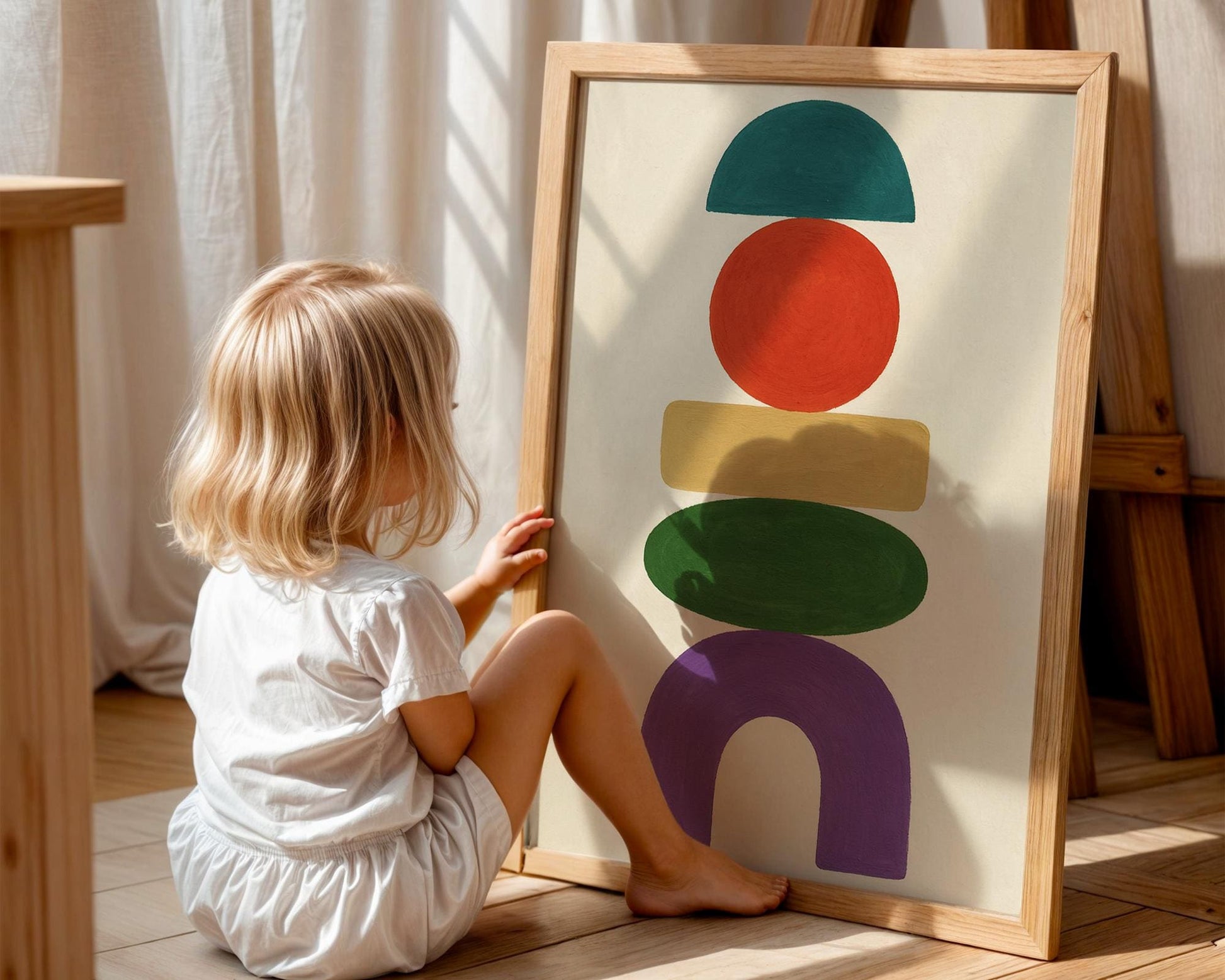 Add a modern touch of color and creativity to your child’s room with this Abstract Geometric Shapes Print, a playful art piece designed to spark curiosity and imagination. Featuring a collection of vibrant geometric forms arranged in a clean, minimalist layout, this print blends art and design beautifully. Perfect for nurseries, playrooms, or modern kids’ rooms, it brings a stylish pop of color while maintaining a soothing balance. Printed on high-quality, fade-resistant paper, this unframed artwork is a versatile and timeless addition to any decor.