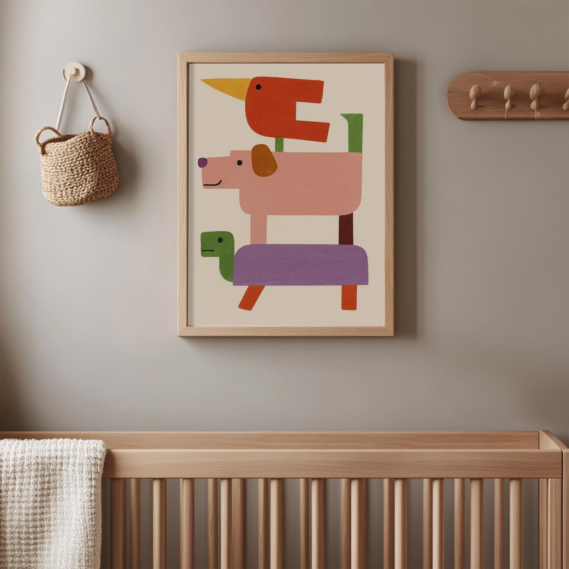 Bring cheerful energy and imagination to your child’s space with this Stacked Animal Friends Print, a colorful and whimsical art piece perfect for nurseries, playrooms, or kids’ bedrooms. Featuring a delightful stack of friendly animals illustrated in a playful, modern style, this print celebrates joy, friendship, and creativity. Its vibrant colors and clean composition make it a wonderful focal point for any wall. Printed on premium, fade-resistant paper, this unframed poster is a fun and heartwarming addition to your little one’s decor.