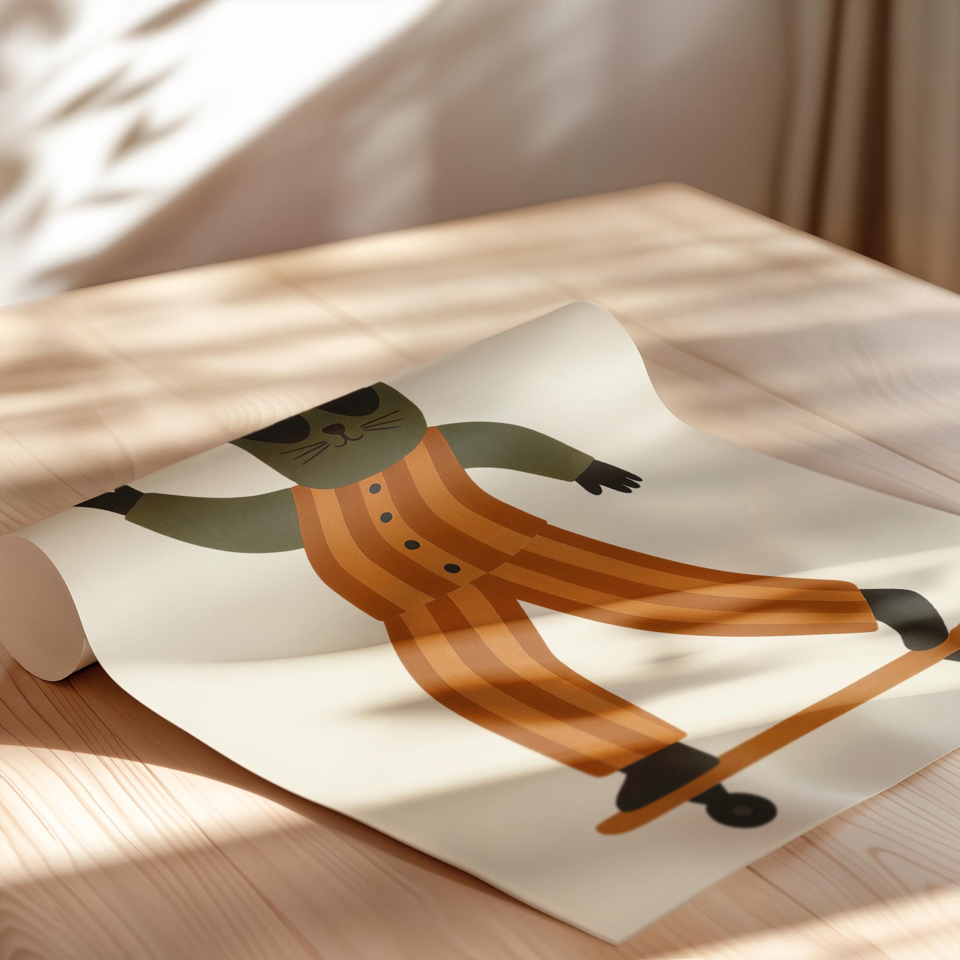 Add personality and playful charm to your child’s space with this Retro Skateboarding Cat Poster. Featuring a cool cat cruising on a skateboard in a vintage-inspired style, this artwork blends humor, character, and retro aesthetics into one fun design.
