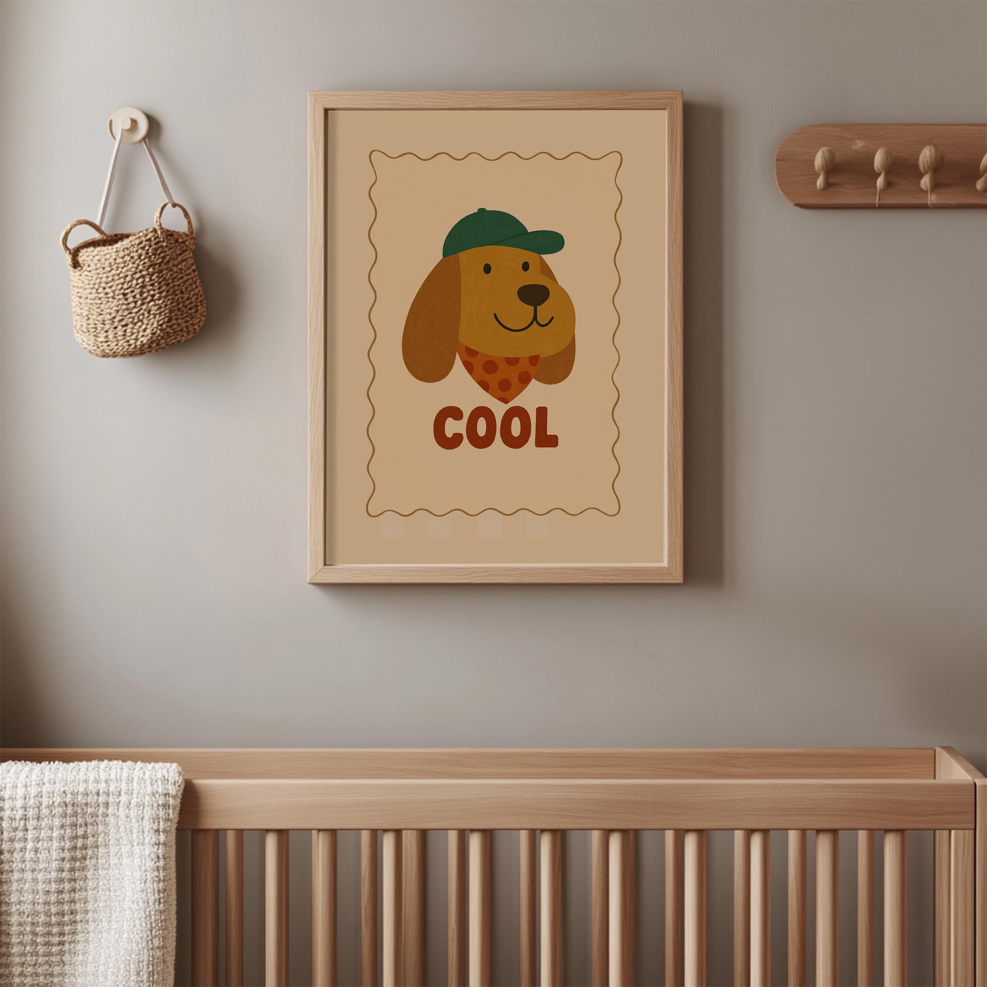 Brighten up your little one’s space with this Cool Dog Rolled Poster, a charming illustration that brings personality and playfulness to any nursery, kids’ room, or playroom. Featuring an adorable dog in a fun, modern style, this artwork captures the spirit of joy and imagination. Its clean lines and warm colors make it a perfect match for both contemporary and whimsical decor themes. Printed on premium, fade-resistant paper and shipped unframed, this poster adds a cheerful and stylish touch to your home — perfect for young animal lovers.