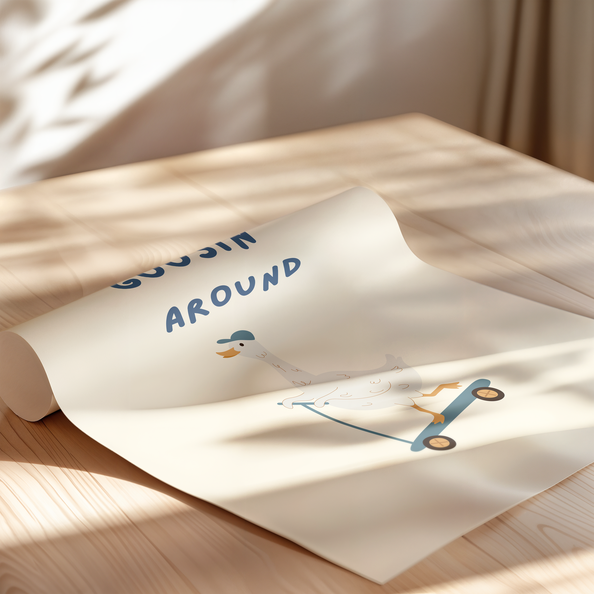 Add humor and charm to your home with this Just Goosin Around Poster. Featuring a playful goose illustration and a lighthearted theme, this design brings a fun and quirky personality to any space.