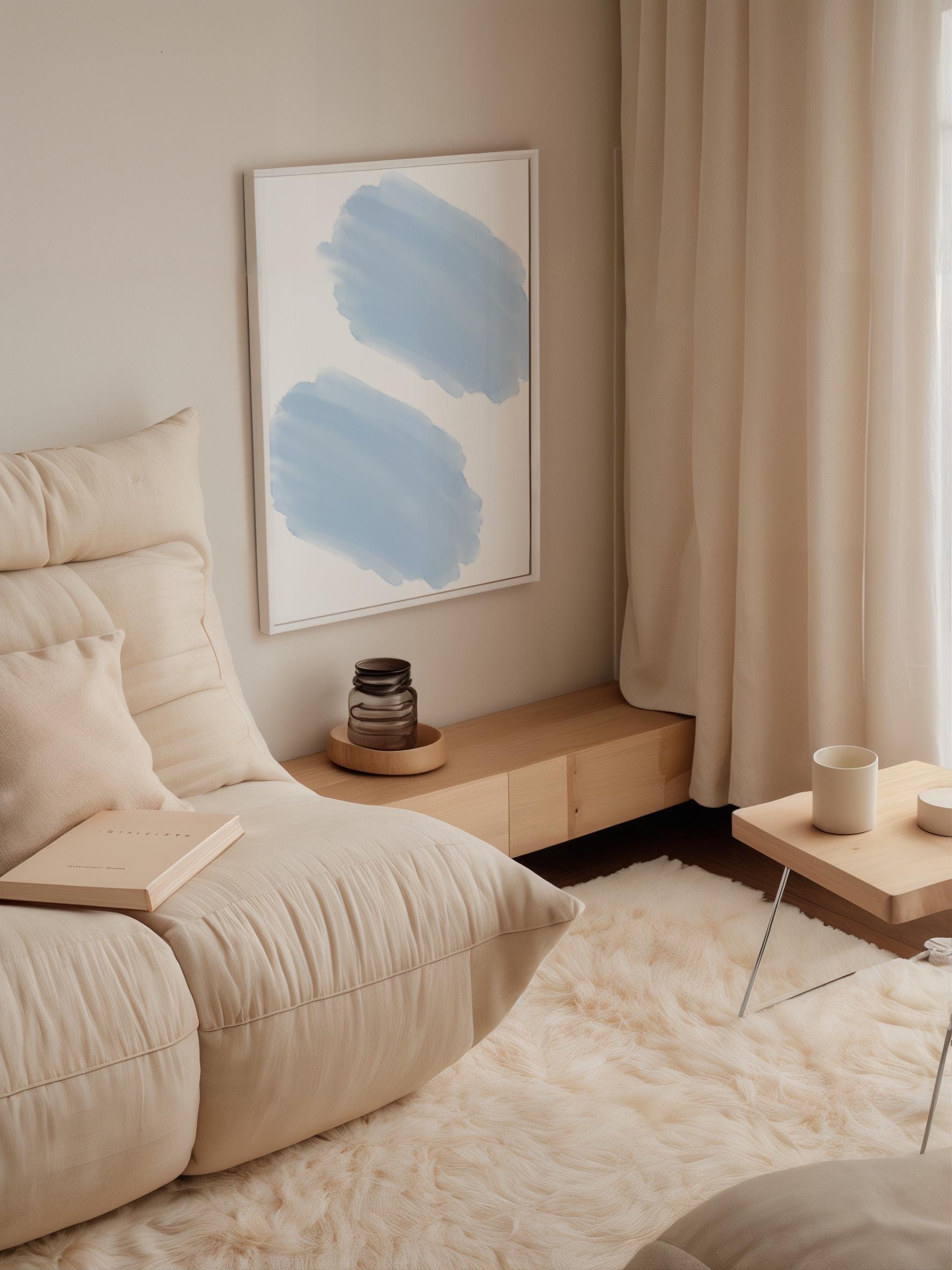 Create a calm and modern atmosphere with this Minimal Blue Brush Strokes Poster. Featuring smooth, expressive blue brush strokes on a clean background, this abstract wall art brings balance, movement, and sophistication to any space. Its minimalist design and cool color palette make it perfect for bedrooms, offices, or living rooms. Printed on premium-quality paper and unframed for flexible styling, this print seamlessly complements modern, coastal, or Scandinavian interiors.