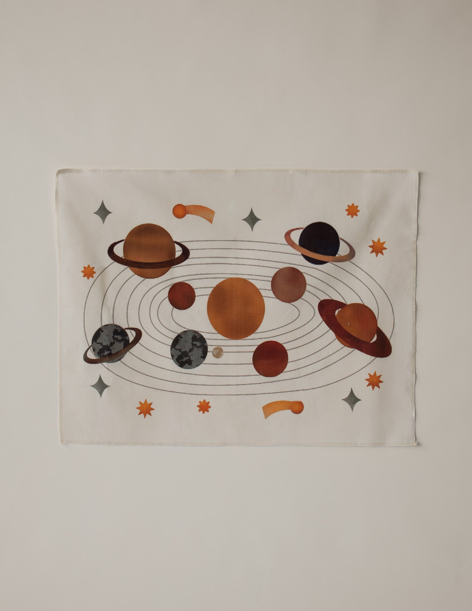 Blast off into a world of imagination with the Solar System Canvas Wall Hanging! Featuring beautifully illustrated planets, orbits, and hand-labeled names, this space-themed decor brings learning and wonder together in one playful piece. With soft, muted tones and whimsical details, it's the perfect addition to any nursery, playroom, or classroom for your little stargazer. Lightweight and easy to hang, it sparks curiosity about the universe — all from the comfort of home.