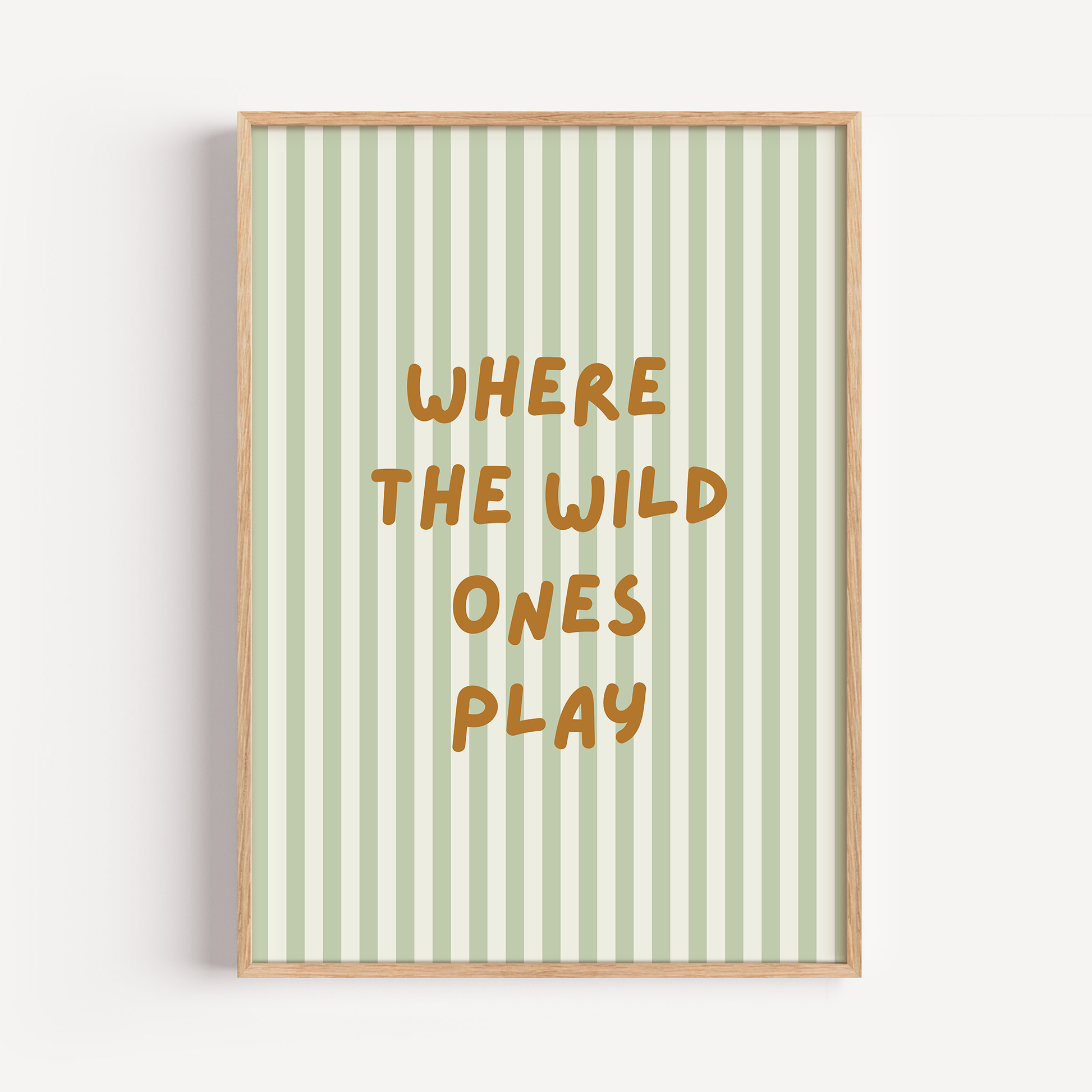 Celebrate imagination and adventure with this Where The Wild Ones Play Poster. Featuring a bold, modern typography design, this wall art adds warmth, wonder, and creativity to your child’s space. Perfect for nurseries, playrooms, or bedrooms, it reminds little dreamers to stay curious and have fun while exploring their world.