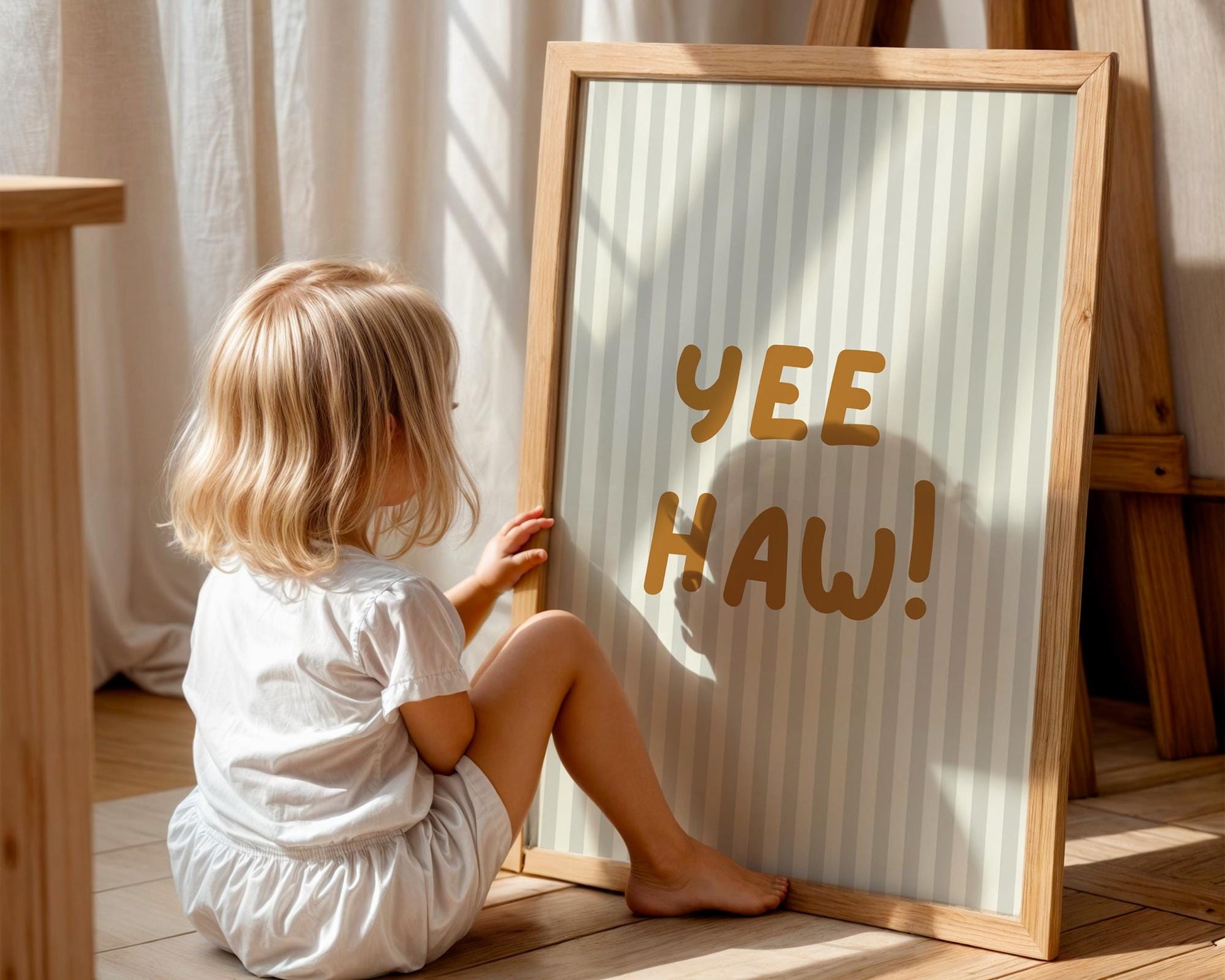 Add a touch of western charm to your little one’s room with this Yee Haw Kids Poster. Featuring playful typography and rustic cowboy-inspired design, this art print brings a sense of adventure and fun to any nursery, playroom, or kids’ bedroom.